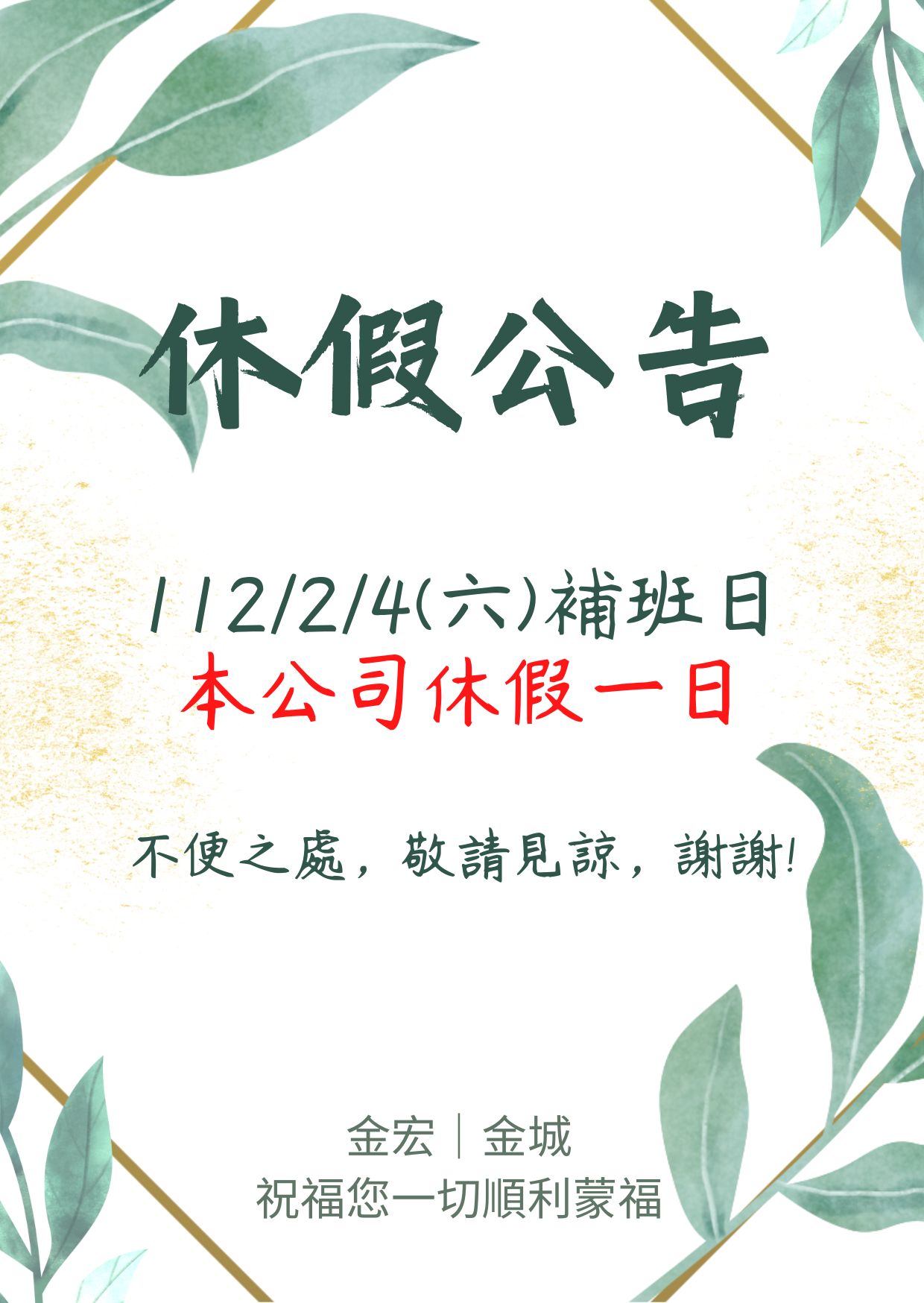 1120204休假公告